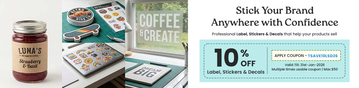 Apply coupon code: TSAVE10LSD26 to get 10% Off on All Label, Stickers & Decals (max $50)