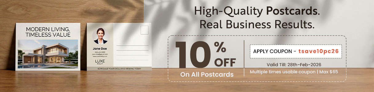 Apply coupon code: tsave10pc26 to get 10% Off on All Postcards (max $65)