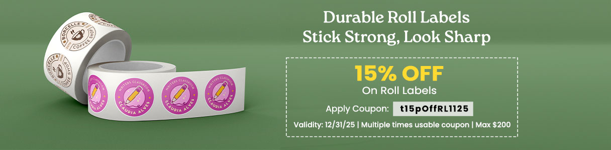 Apply coupon code: t15pOffRL1125 to get 15% Off On Roll Labels (max $200)