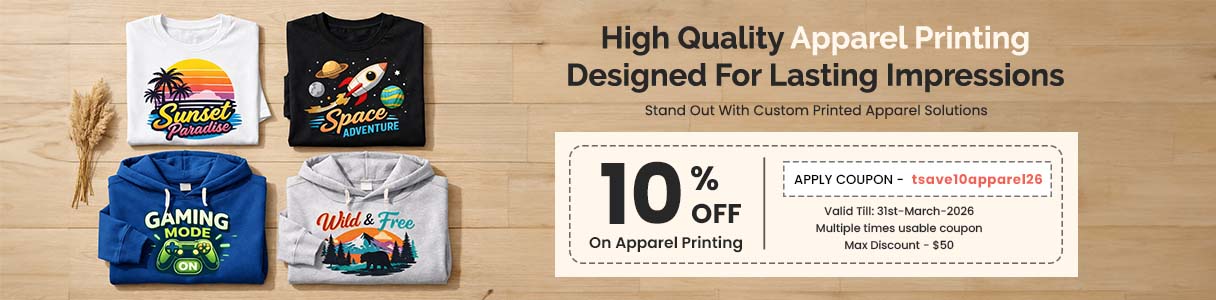 10% Off on Apparel Printing (max $50)