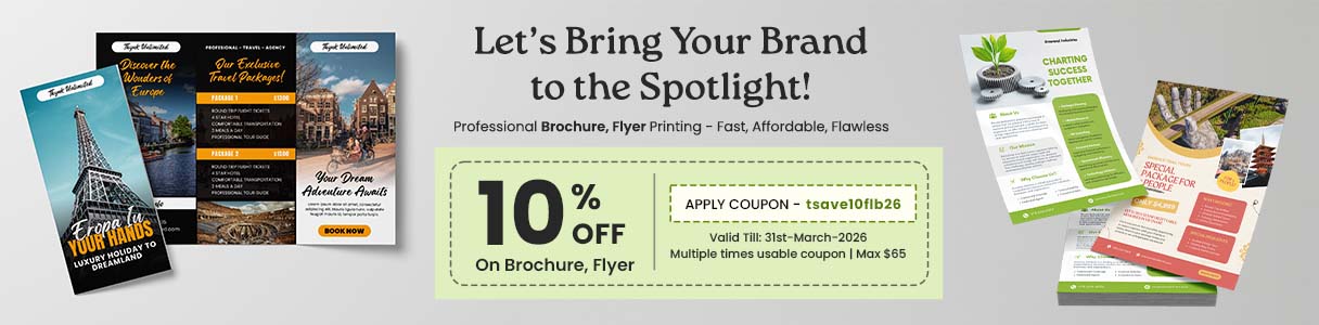 10% Off on All Flyer & Brochure (max $65)